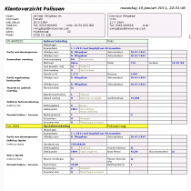 Hieronder ziet u een voorbeeld van een klantoverzicht om bijvoorbeeld mee te kunnen nemen naar uw klant. Natuurlijk kunt u bij uw klant ook online het klantdossier raadplegen, soms heeft een hardcopy echter de voorkeur tijdens een persoonlijk gesprek.